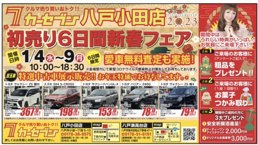 ・カーセブン八戸小田店 12/28(水)~1/3(火)