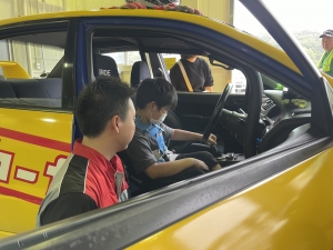 〇JAF公認ダートトライアル選手権参戦車(三菱ランサー)を展示します。ヘルメットを被って写真撮影できます。