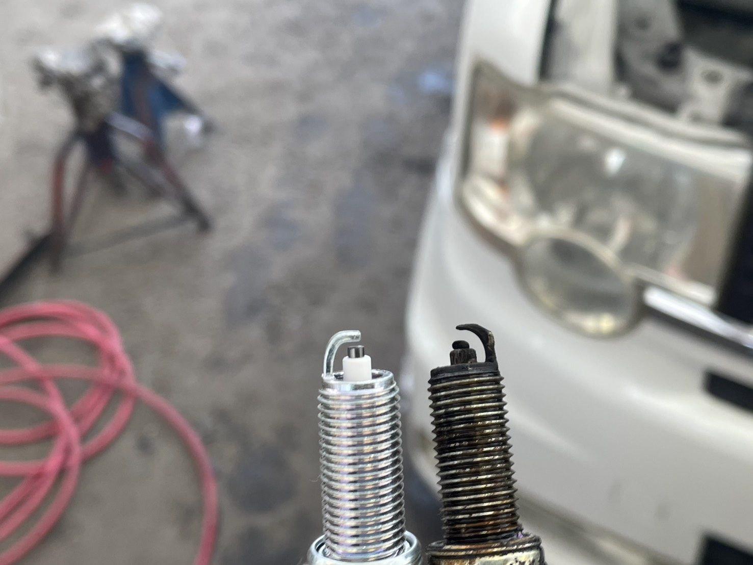 エンジンがかからなくてセルを回し続けていてバッテリーも弱っていましたが、今回は見守る形になりました。