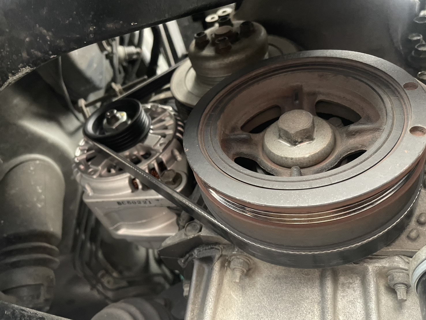 最終結果はオルタネーター自体の発電不良により、バッテリーに電気をチャージすることができなくなっておりました。ファンベルトも減りがありましたので同時にファンベルトも交換致しました。