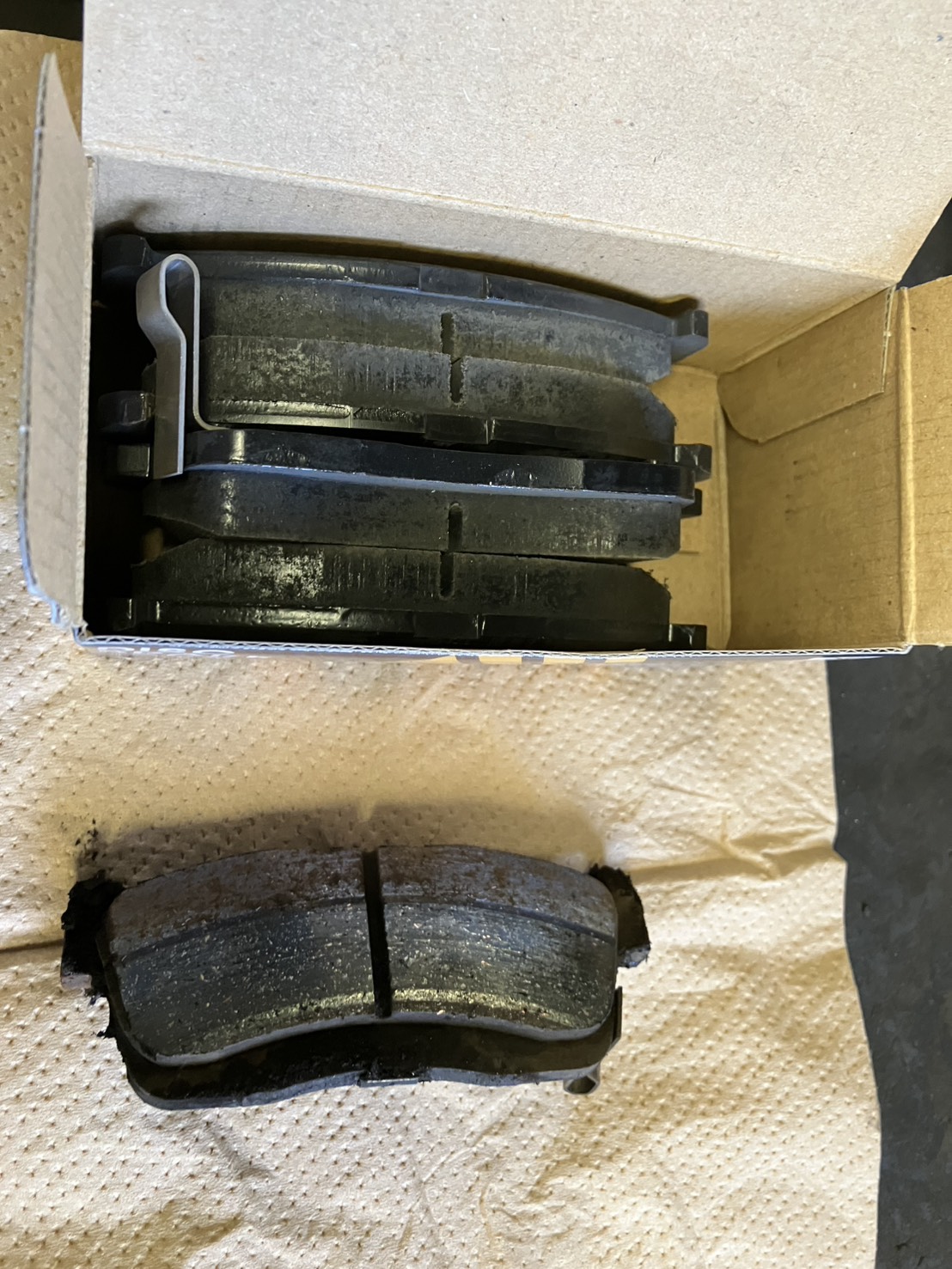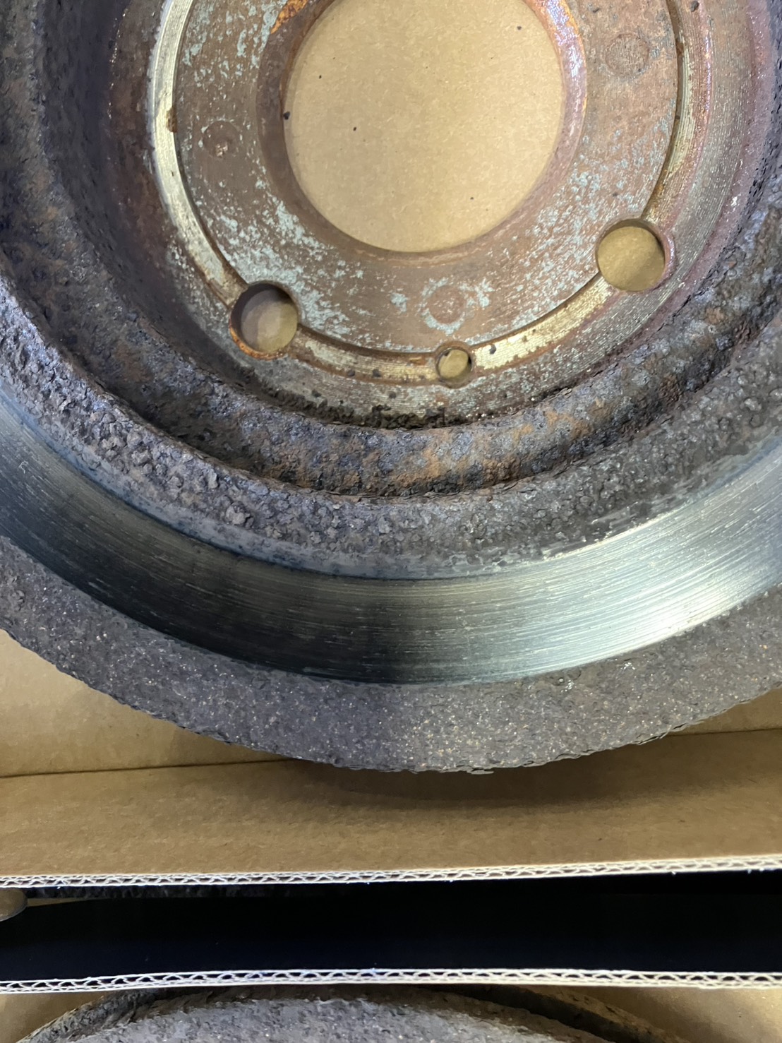 フロントのブレーキが錆びておりました。ブレーキディスクパットとブレーキディスクローター(円盤のようなもの)の交換が必要となりました