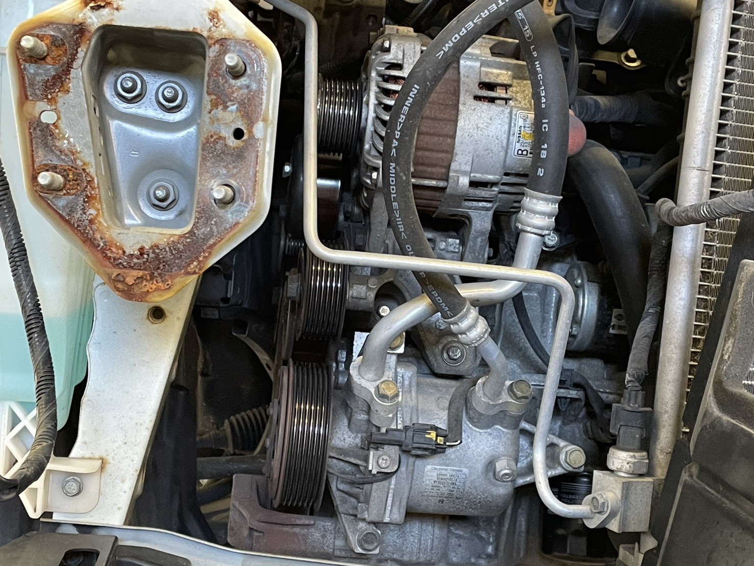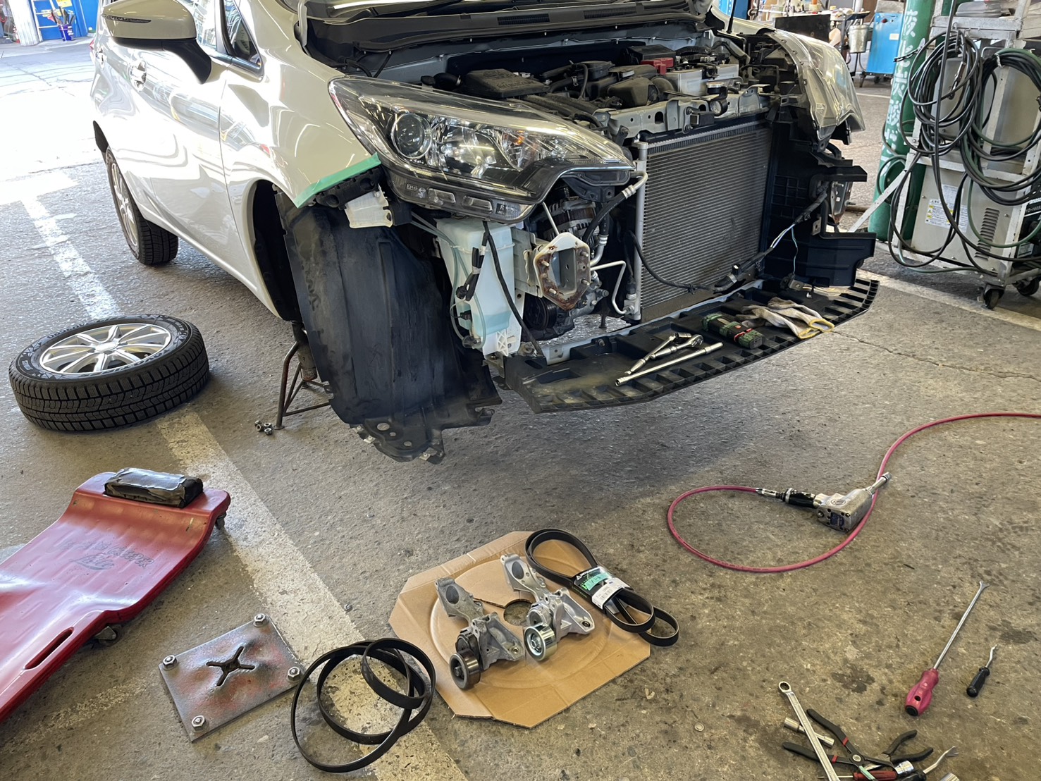 フロントバンパー脱着・オートテンショナーとベルト交換となります。