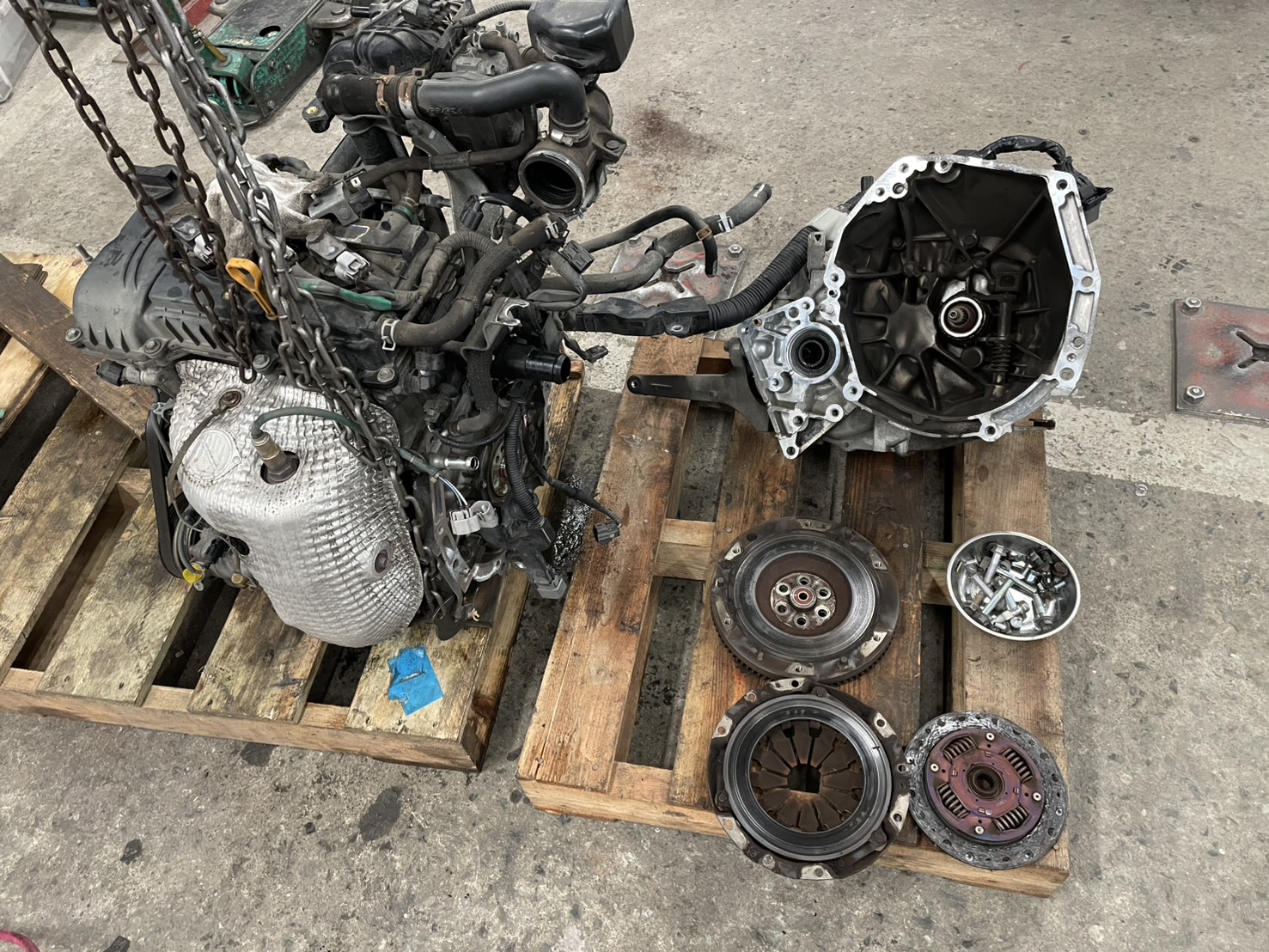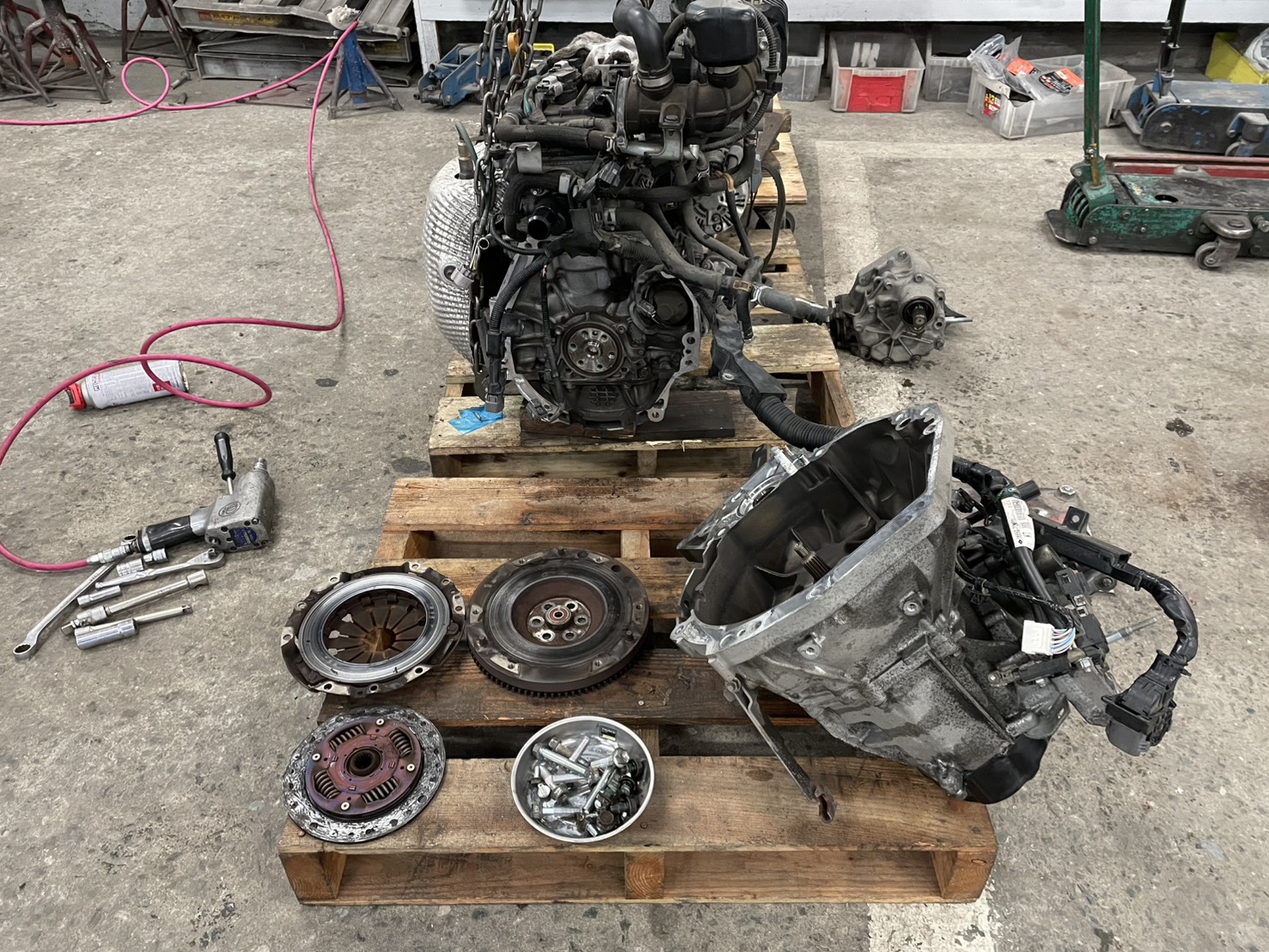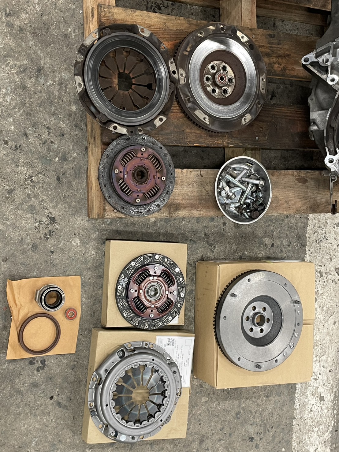 話はそれましたが、なんとワゴンRはエンジン降ろし!これは重整備大手術となりました。クラッチオーバーホールはクラッチディスク交換、クラッチカバー交換、クラッチレリーズベアリング交換です。