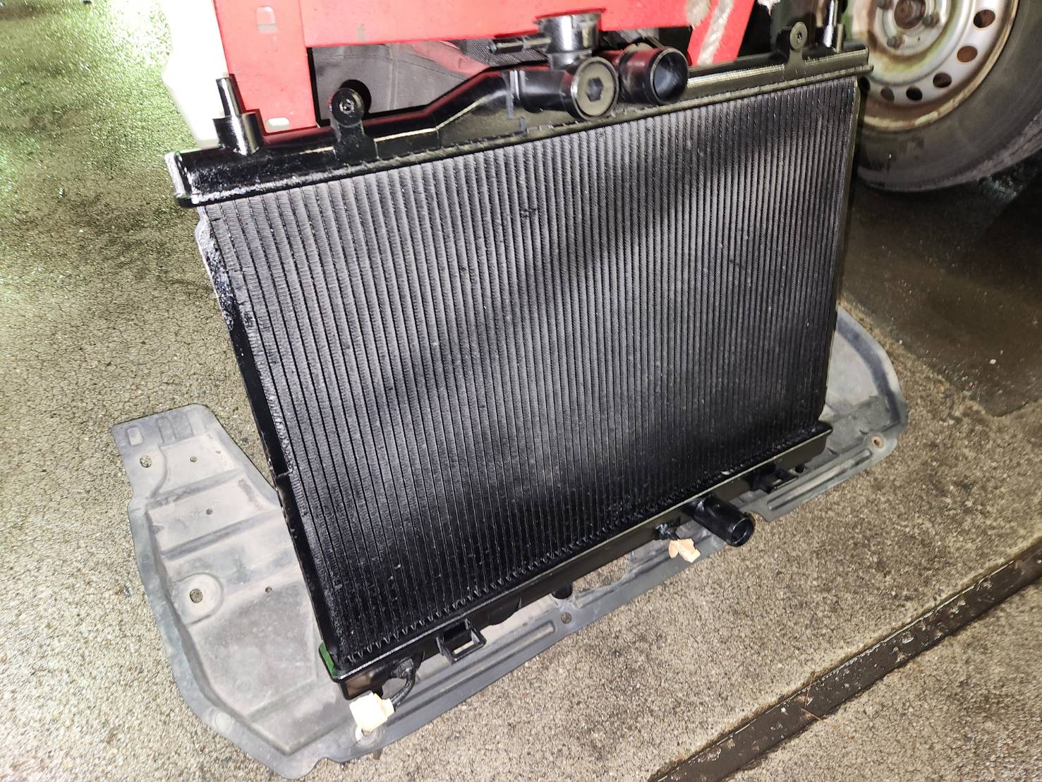 車検ではラジエターのロアタンクからクーラント(冷却水)が漏れていましたので交換となりました。