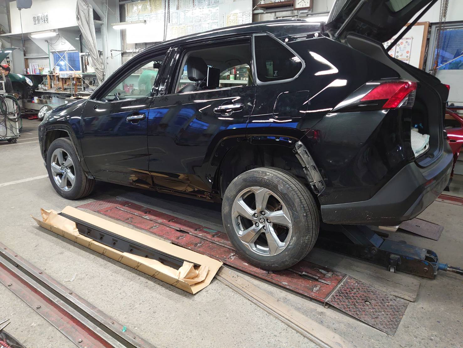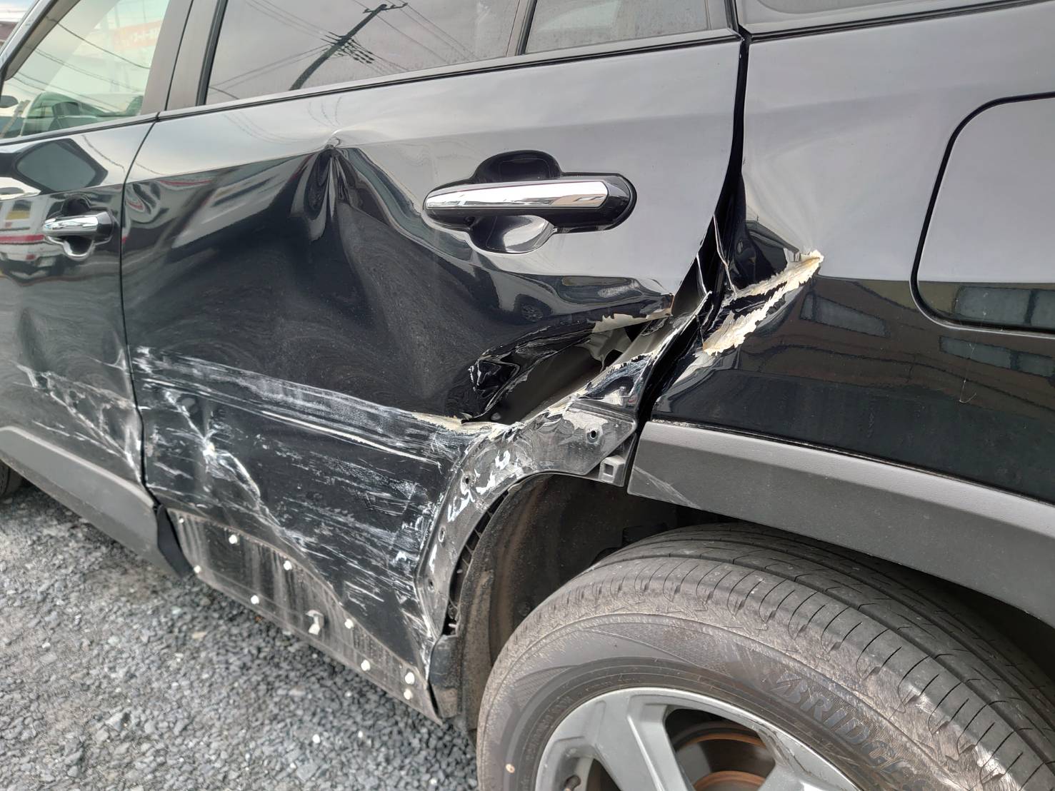 - トヨタ RAV4 ハイブリット 鈑金塗装・事故修理 左リヤドア付近損傷修理