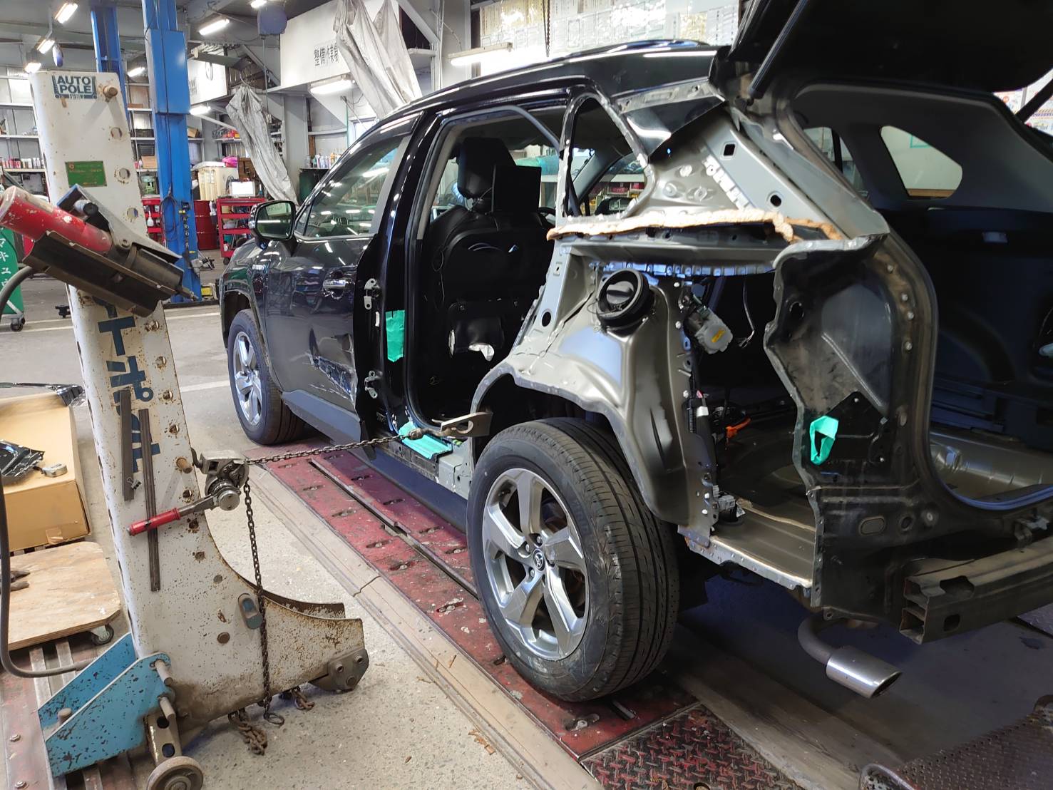 トヨタ RAV4 ハイブリット 鈑金塗装・事故修理 左リヤドア付近損傷修理