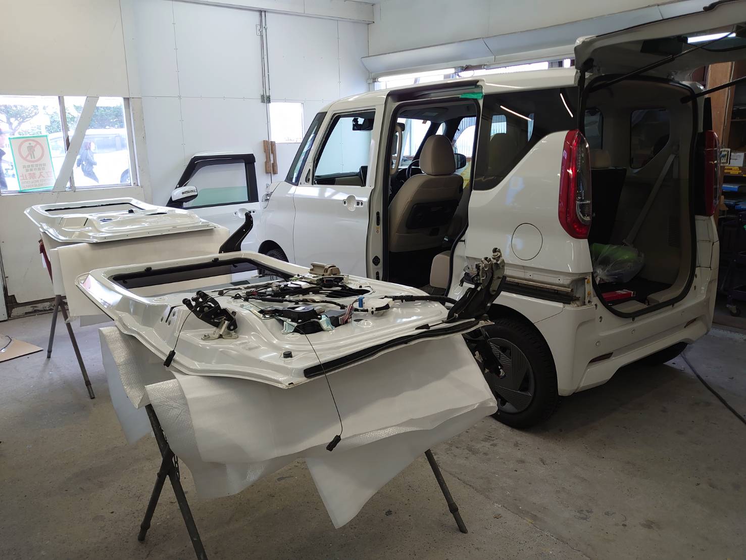 - 日産ルークス B48A 鈑金塗装・事故修理 左スライドドア損傷修理