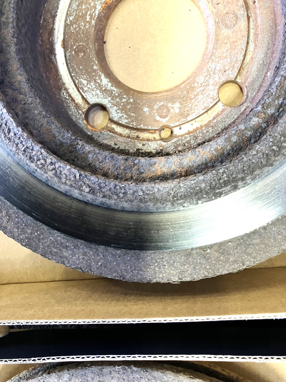 - タント ロータススマイル車検ご入庫 錆止め付きの保守整備コース。ブレーキ錆付きの為交換でした。