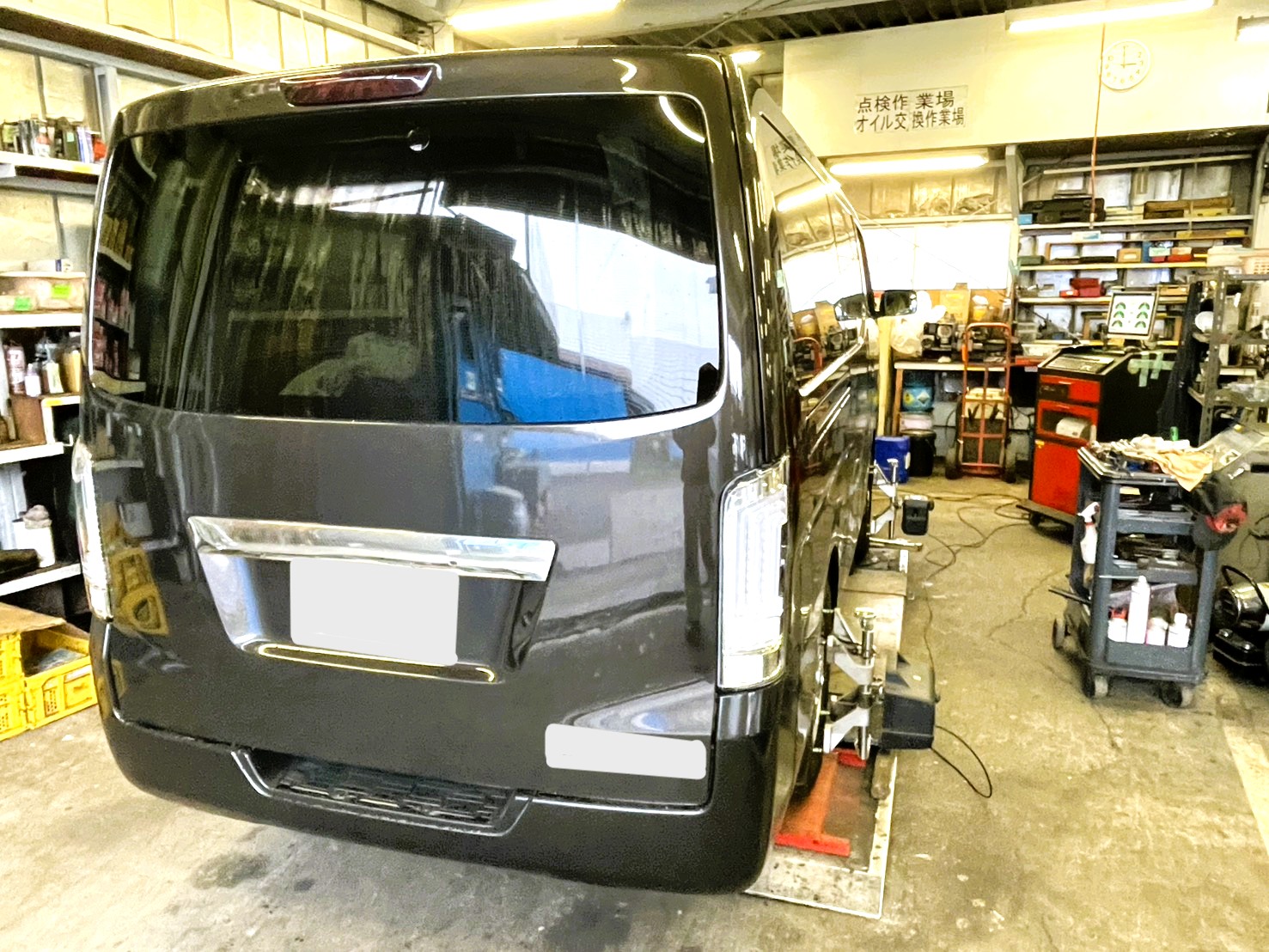 日産キャラバン 4輪アライメント測定調整一式依頼