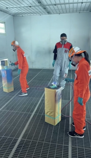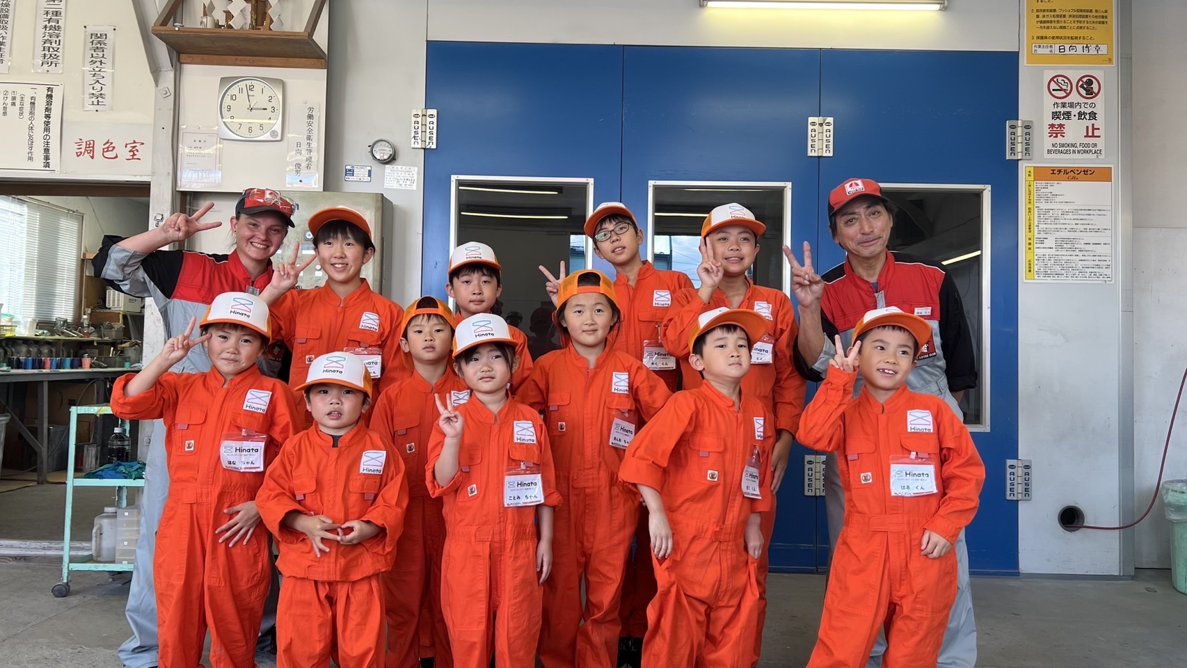 色の3原色を勉強した後、本物の車の塗料を使い調色をしたり、塗装ブースで職人の指導を受けながら楽しくたいけんしていました。