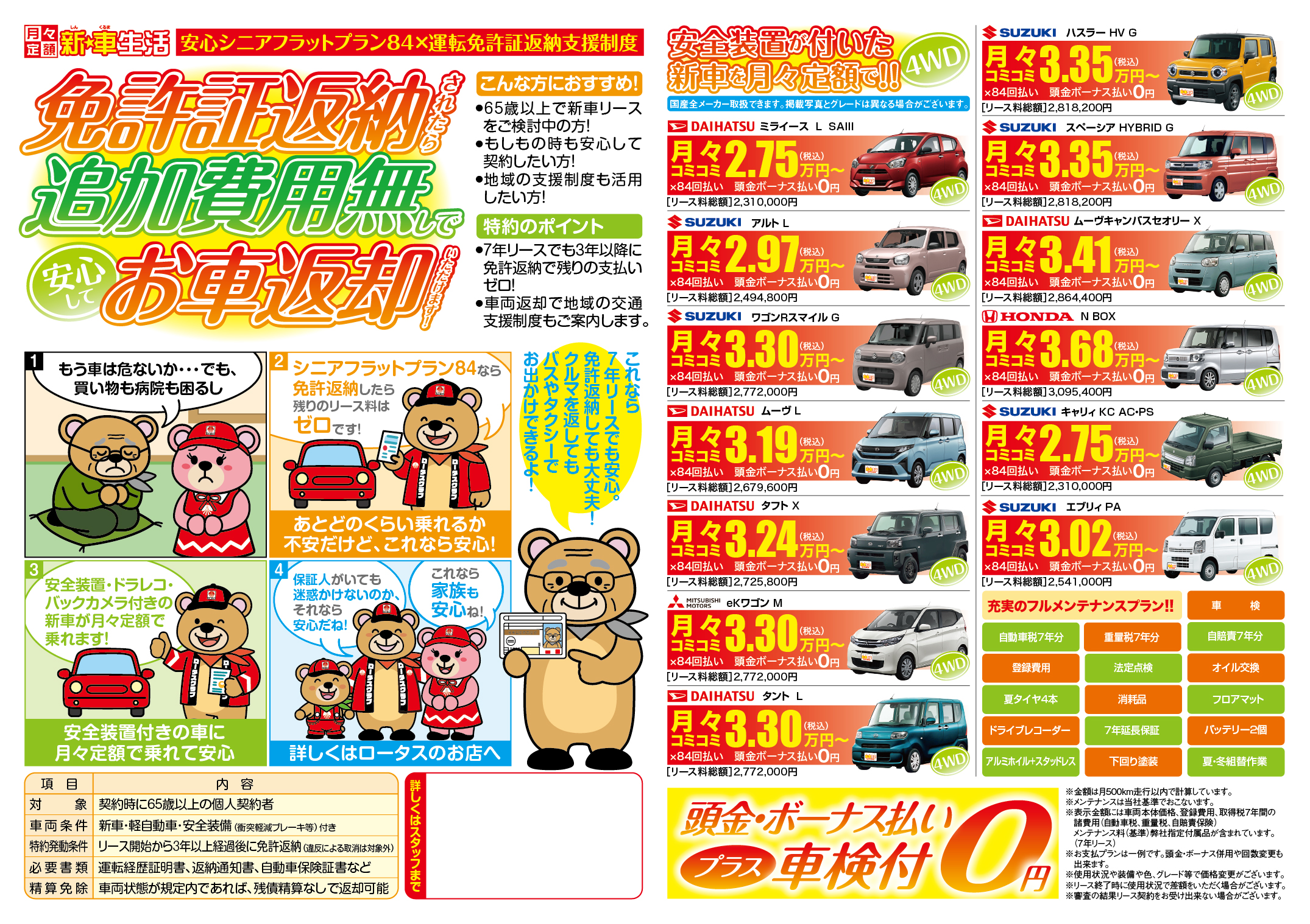 シニアプラン:シニアフラットプラン84なら免許返納したら残りのリース料はゼロです